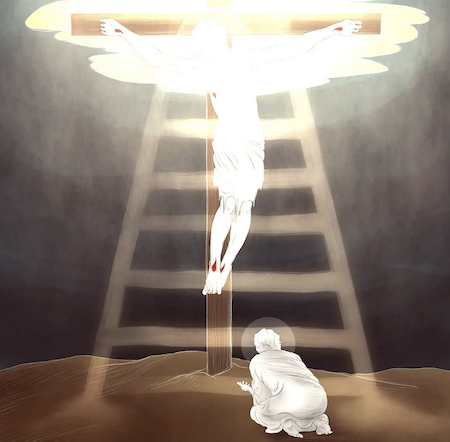 “Un redzi, Dieva eņģeļi kāpa pa tām augšup un lejup.” [1.Moz.28:12] Kristus visu ir darījis mūsu dēļ – gan nokāpis ellē, gan atkal uzkāpis Debesīs.